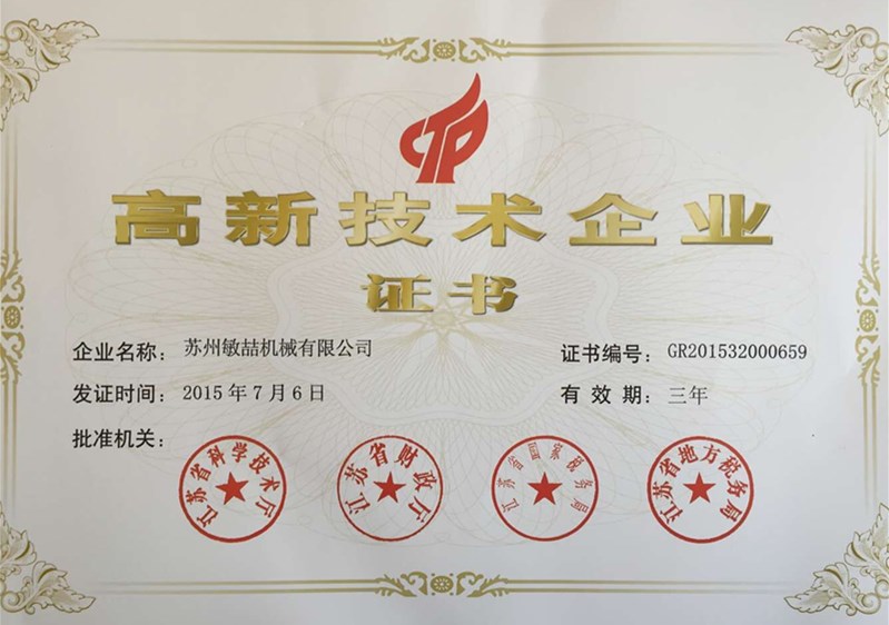 北京三聯虹普新合纖技術服務股份有限公司(以下簡稱“公司”或“三聯虹普)全資子公司蘇州敏喆機械有限公司(以下簡稱“蘇州敏喆”)于近日收到江蘇省科學技術廳、江蘇省財政廳、江蘇省國家稅務局、江蘇省地方稅務局聯合頒發的《高新技術企業證書》,蘇州敏喆被認定為江蘇省高新技術企業,證書編號:GR201532000659,發證日期:2015年7月6日,有效期3年。